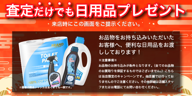 お品物の名前や種類、状態、またはブランド名、型番などの情報があると、概ねの査定額をお伝えできるかと思います。