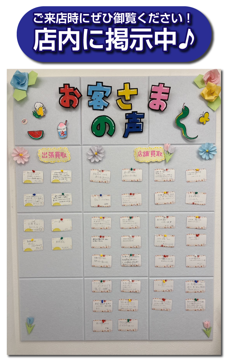 大歓迎です。未使用品などのお持ち込みは少なく、傷や汚れのあるアイテムをお持ちいただく方が半数以上です。