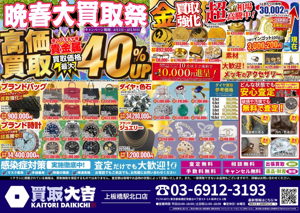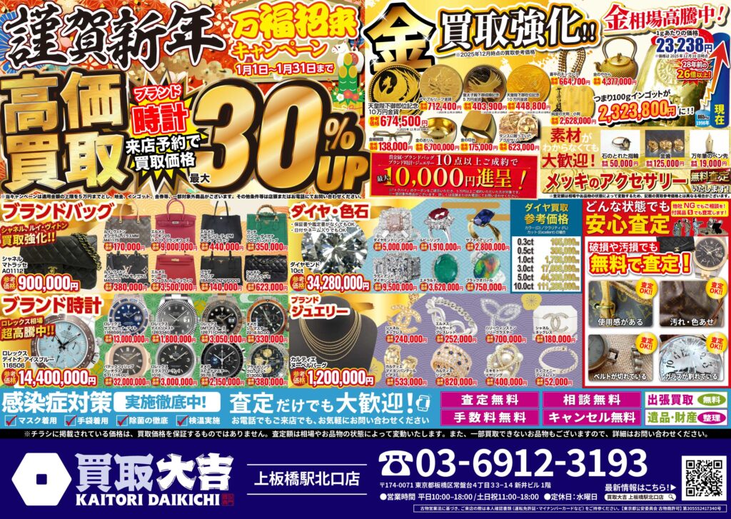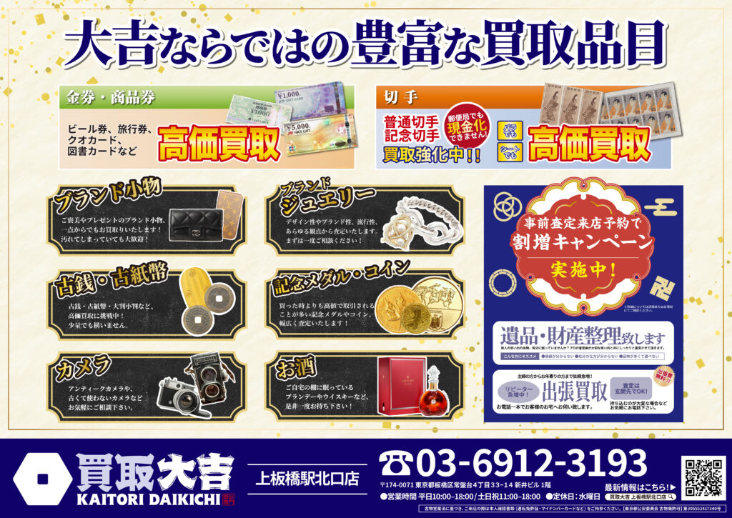 金・貴金属・ブランド品はもちろん、お値段がつくか迷われているものも是非お持ちください。