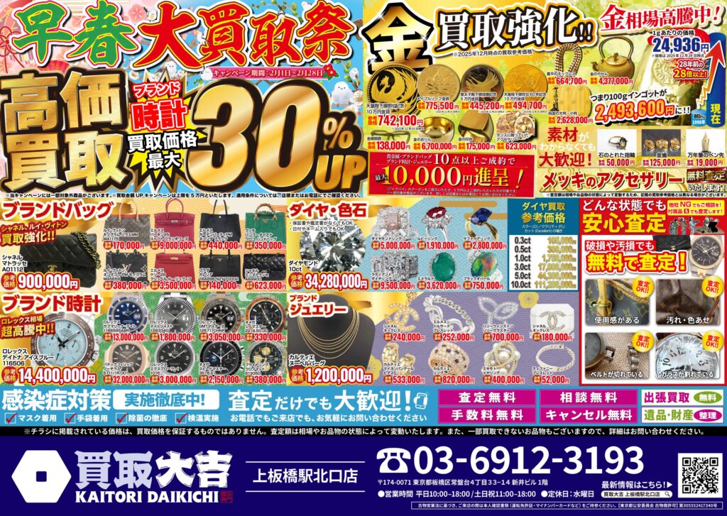 キャンペーン実施店舗 よくあるご質問 買取価格は主にどんな要素から決まるのでしょうか? お品物の状態や付属品の有無、最新相場、流通量などによって買取価格を算出します。 どんなものを買い取ってもらえますか? 金・貴金属・ブランド品はもちろん、お値段がつくか迷われているものも是非お持ちください。 傷や汚れのあるアイテムでも買取可能ですか? 大歓迎です。未使用品などのお持ち込みは少なく、傷や汚れのあるアイテムをお持ちいただく方が半数以上です。状態の悪いお品物やカビなどがあってもお買取可能なケースもございます。 どんな情報があればすぐに査定額を教えてもらえますか? お品物の名前や種類、状態、またはブランド名、型番などの情報があると、概ねの査定額をお伝えできるかと思います。 店舗での査定時間はどのくらいですか? お品物の種類や個数にもよりますが、約5分から30分ほどの査定時間となるケースが多いです。事前にある程度の査定時間をお伝えいたしますので、ご安心ください。